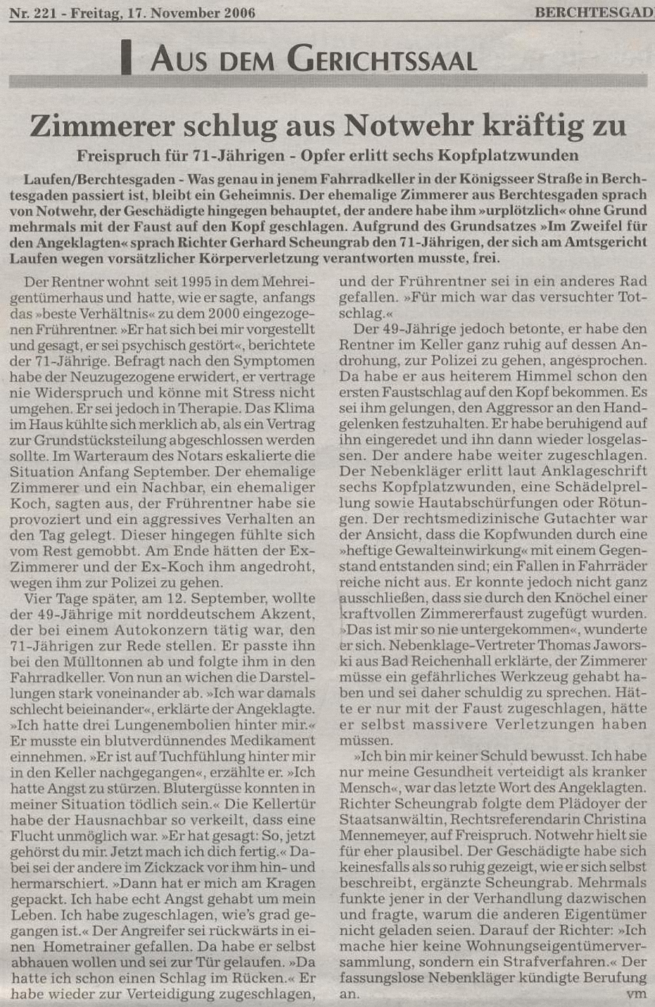 Aus 7 Platzwunden wurden in dem ersten Urteil nur noch 6 (siehe Zeitungsartikel).